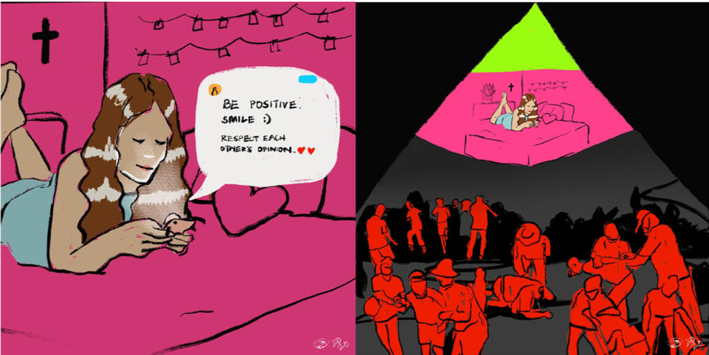 In light of the toxic positivity issue last April 2020, this artwork depicts privilege as someone within the peti-b bubble.